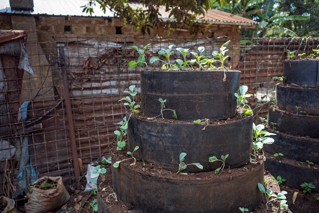 Wambui’s focus on poultry is both profitable and sustainable because she uses an organic vertical farming system, enriched with manure from her ducks. This method helps reduce evaporation and runoff, making it easier to manage the crops even during dry periods. It also creates a microclimate that can help mitigate the effects of extreme weather conditions.