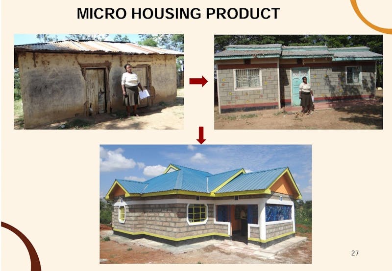 Kenya Women Microfinance Bank (KWFT) a Kenyan microfinance bank is revolutionizing the way women on low incomes can access funds to build and improve their homes in rural areas. KWFT has taken a different approach to home ownership financing in pursuit of increasing home ownership in the country especially to the rural poor. Once the loan is approved, the bank disburses this loan in phases in tandem with construction phases to avoid funds diversion summing up to USD 10,000 for construction of all or part of a house and repayable over a maximum of three years.